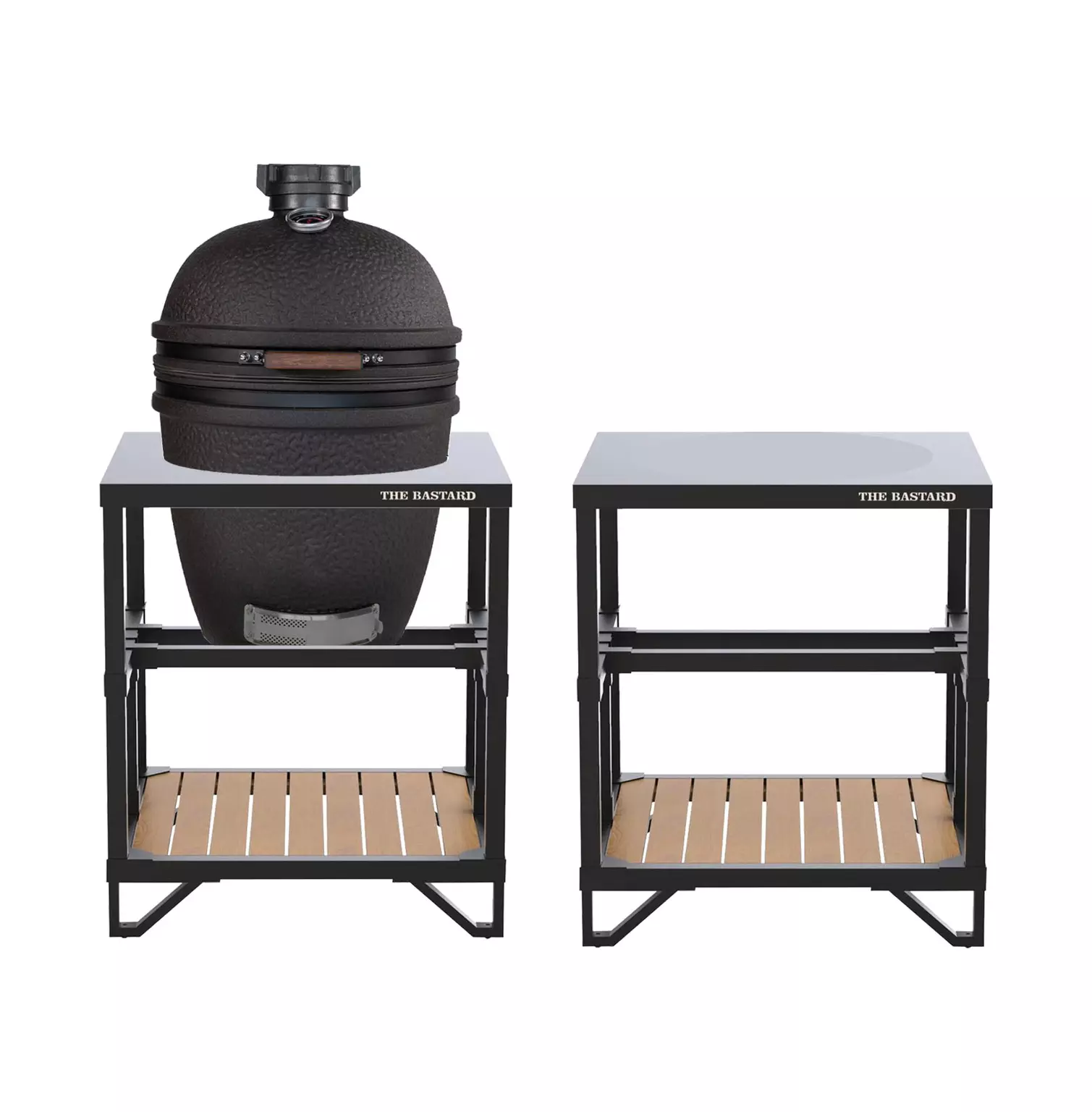 Ben jij op zoek naar een complete houtskoolbarbecue met een zijtafel? Dan is de Bastard Urban Large Solo met inbouw en zijtafel¸ van The Bastard, een zeer goede keuze. Deze kamado barbecue heeft namelijk vele verschillende grillmogelijkheden én je hebt door de zijtafel ruimte om barbecue-accessoires, eten en kruiden uit te stallen. De zijtafel beschikt over twee hardhouten bamboeplanken en één werktafel waar je eten kunt voorbereiden. Daarnaast zitten aan de zijkant van de zijtafel gereedschapshaken. Hierdoor kun jij je bbq-gereedschap ophangen en heb jij het altijd bij de hand. Ook de inbouw beschikt over één hardhouten bamboeplank om spullen uit te stallen.