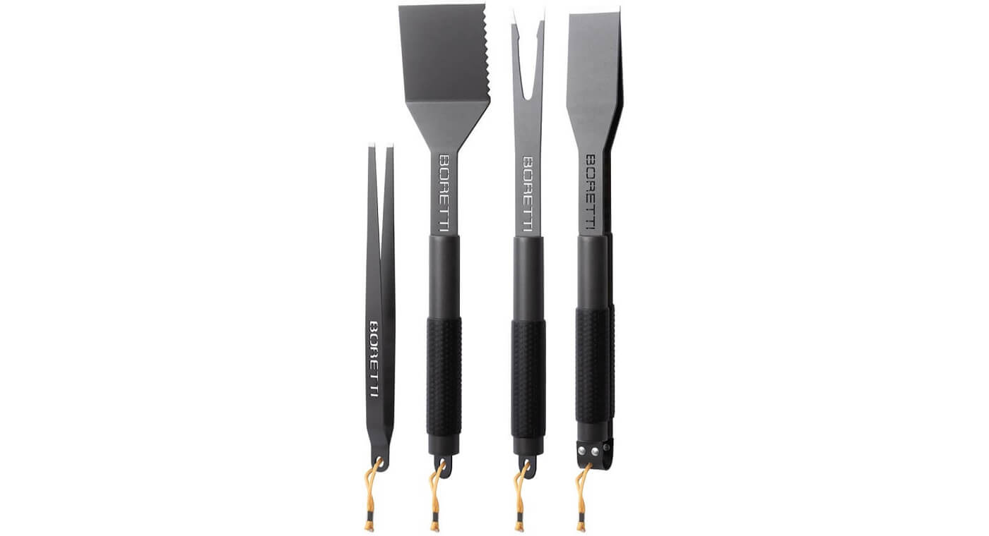 Boretti BBQset (tang, spatel, vork en pincet) goedkoop kopen? Je vindt een uitgebreide keuze bij 24BBQ.nl