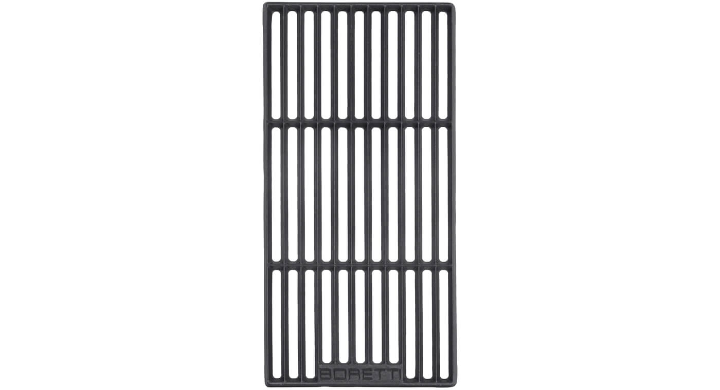 Dit gietijzeren Boretti grillrooster is geschikt voor de Boretti DaVinci, Ligorio, Ibrido, Maggiore en Luciano. De voordelen van gietijzer zijn oneindig. Duurzaam, snel warm, blijft lang warm en zorgt voor een onverbeterlijke smaak. Het is een robuust en sterk materiaal en eenvoudig schoon te maken, je hebt aan een borstel en warm water genoeg. Dankzij een perfecte warmteoverdracht grill je heerlijke entrecote, gamba’s en courgette als nooit tevoren.