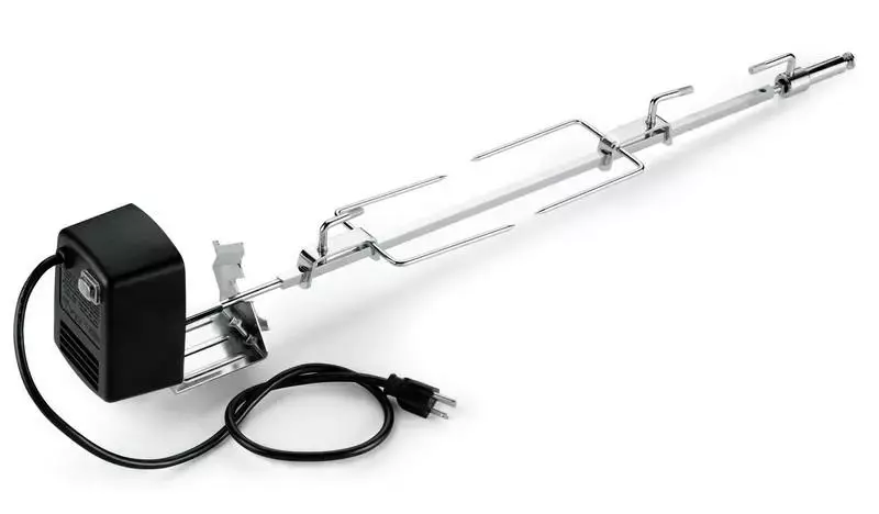 De braadspit Spirit is geschikt voor alle oude en nieuwe Weber® Spirit® gasbuitenkeukens. Het braadspit is voorzien van twee vorken, waarmee je probleemloos kippen of grote braadstukken kunt bereiden.