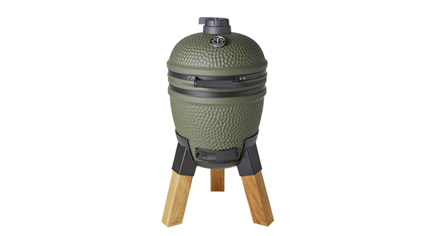De moddern kamado barbecue is de perfecte combinatie tussen stijl en functionaliteit. Het hoogwaardige keramiek zorgt voor goed warmtebehoud en een gelijkmatige warmteverdeling, waardoor je altijd perfect gegrilde gerechten krijgt. Het unieke design met de mat groene kleur maakt dit model een echte eye-catcher in je tuin. Het unieke zwarte aluminium onderstel met houten poten zorgt ervoor dat deze BBQ heel stevig staat. Daarnaast is deze BBQ uitgerust met een kwalitatieve thermometer, die bestand is tegen condens. Dankzij de top en bottom vent kun je met gemak de temperatuur in je barbecue regelen.