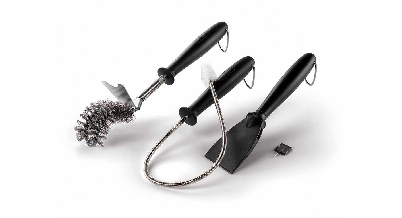 Schoonmaakset voor de binnenkant van de grillkamer. Deze set bestaat uit een flexibeleventuri borstel voor het onderhoud aan de binnenzijde van de branders, een schuine borstel voor het verwijderen van grof vuil aan de buitenkant van de branders en een schraper om vet en vuil te verwijderen. Deze set is alleen te gebruiken als de grill koud is.