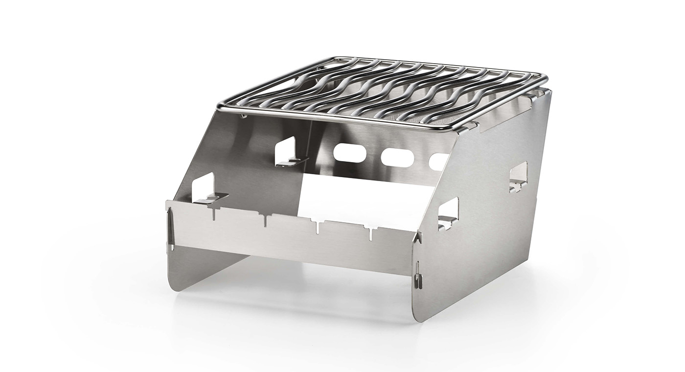 Multifunctioneel SIZZLE ZONE rek, te gebruiken als windscherm maar ook te gebruiken om het rooster op verschillende hoogtes in te stellen. Ontworpen met gleuven voor 6 shaschlik spiezen. Passend voor de Rogue modellen. Exclusief rooster.