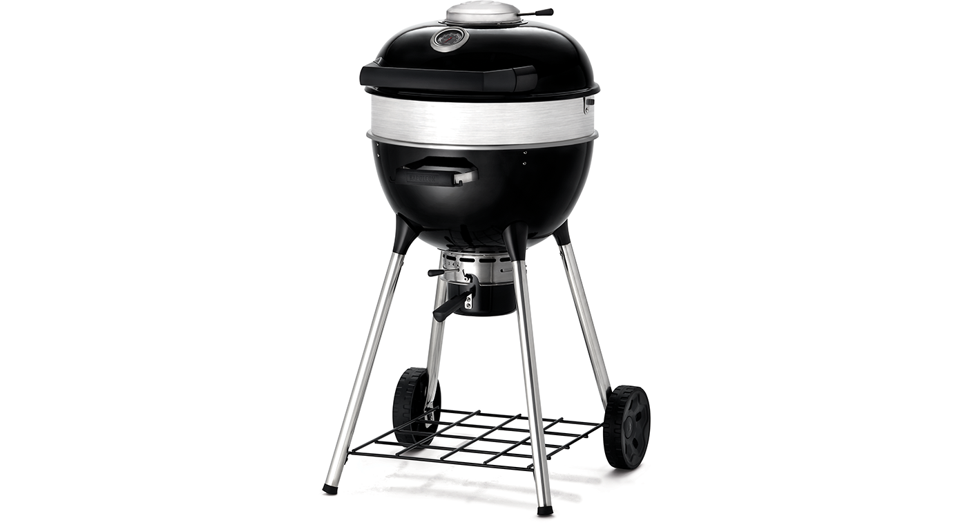 De flexibele PRO18K-LEG houtskoolbarbecue van Napoleon is een ideale barbecue van 18 inch (46 cm) voor elke liefhebber van barbecueën op houtskool. Grill of rook gerechten met uw favoriete houtsoort. Gietijzeren grillroosters kunnen op drie verschillende niveaus geplaatst worden, zodat u altijd op uw manier kunt barbecueën. Dankzij het geïntegreerde schoorsteenkanaal is je barbecue beschermd tegen windvlagen of regen terwijl je ook de temperatuur vrij precies kunt bepalen. Het Vortex-systeem regelt de temperatuur en verbetert de verdeling van hete lucht in de barbecue, waardoor je sneller en beter kunt roken en grillen met een lager brandstofverbruik. De RVS uitbreidingsring is geschikt voor installatie van een draaispitset, met afdekkappen op de spitopeningen.