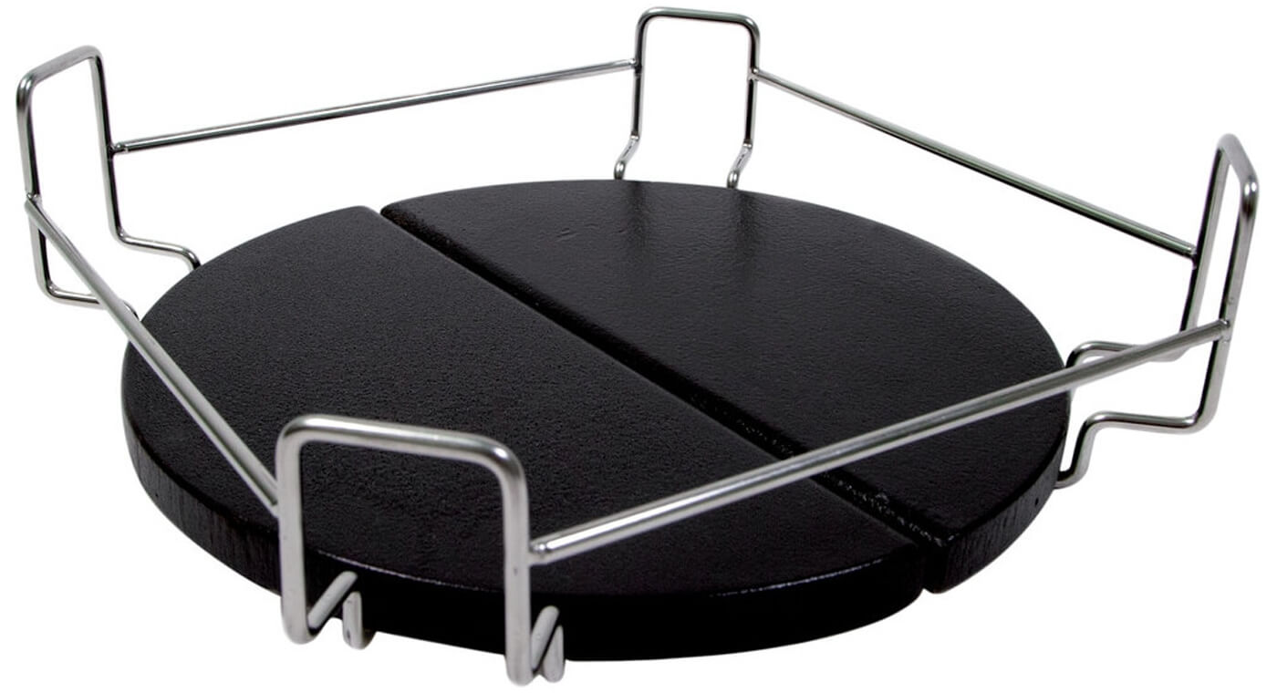 The Bastard Plate Setter Square zorgt ervoor dat The Bastard de werking van een oven krijgt. Jouw vlees, groenten of vis wordt indirect verhit en brandt niet meer aan. Het gerecht gaart gelijkmatig op jouw kamado. Deze keramische plate setter bestaat uit drie delen: de rvs-houder en twee losse halve ronde stenen gemaakt van cordoriet keramiek met een dikte van 18 mm.